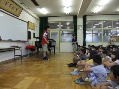 今日はゲストティーチャーに来ていただき,ピアノの演奏と視覚障害についてお話をしていただきました。相手のことを考えること。ちょっとした声かけが相手を助けること。今日の学習を通して子どもたちは相手と関わるについて深く考えました。