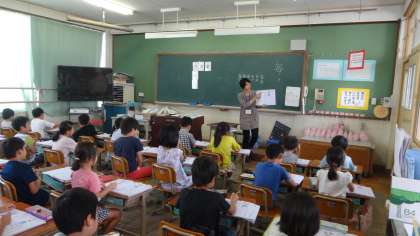 漢字の学習の様子です。「毎」という字を学習しました。毎日,毎週,毎月,毎年などといった言葉も,みんなでたくさん見つけることができました。