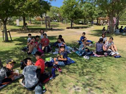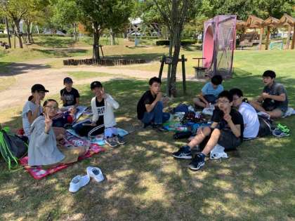 今からお昼ご飯です。朝から作っていただいたおいしいお弁当をいただきます。涼しい風もふいていて,最高に良い天気です。