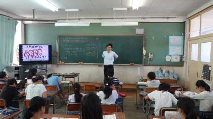 算数の学習の様子です。それぞれ考えたことを大型テレビを使ってみんなで確認しながら,学習を進めていきました。