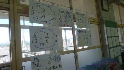分数の計算の学習もだいぶ進んできました。これまで学習してきたことのポイントは,教室の側面に掲示し,一つ一つ確認しながら学習を積み上げていっています。