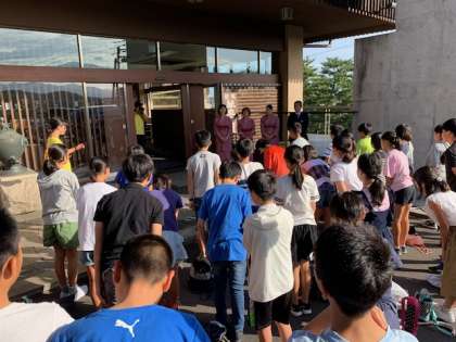 退館式です。大変お世話になった琴平花壇の皆さんに感謝の気持ちを伝えました。ありがとうございました。
