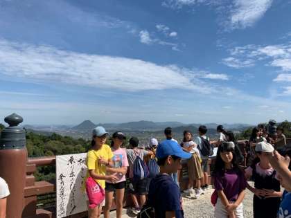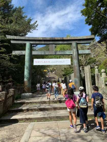 金刀比羅宮へ向かいます。約半分ぐらいの児童が頂上まで登りきりました。