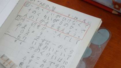 繰り下がりのあるひき算の学習をしています。それぞれに考えたことを発表し合いながら,学習を進めていきました。