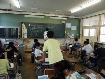 速さの学習をしています。1組は速さを使った問題に取り組みました。子どもたちは表を使ったり,式を使ったりして問題を解きました。