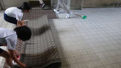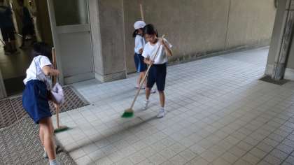 それぞれの掃除場所を一生懸命頑張って掃除しています。この季節,外掃除は砂が舞い込んで大変ですが,丁寧に掃除してくれています。