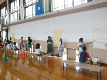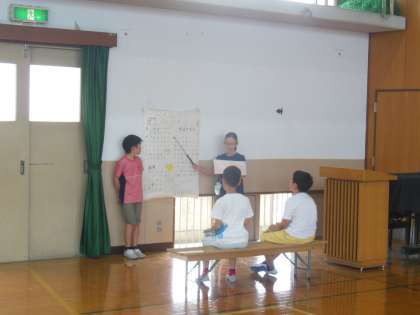 今週金曜日の5時間目に4年生の学習発表会があります。そこに向けて,今日は体育館で練習をしました。本番に向けて説明をしたり,お客さんになったり,最後にはグループで振り返ったりしました。残り時間も少なくなってきましたがより良い発表を目指して,どの子も工夫していました。