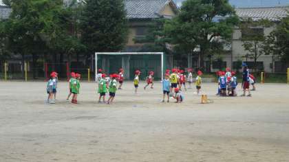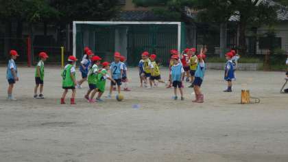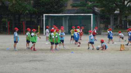 「ボールあそび」の学習です。今日はチームに分かれて,ころがしドッヂを楽しみました。