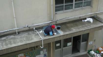 先日より工事が進められています。工事は明日,明後日の土曜日,日曜日も行う予定をしています。ご来校の際は気を付けていただきますようにお願い致します。
