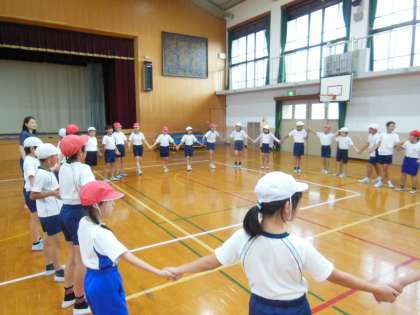 そんな中,今日はキャンプファイヤーでする,マイムマイムや手つなぎリレーをしました。みんな楽しそうに踊ったり,ゲームをしたりしていました。