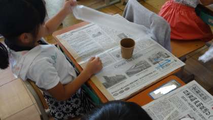 「何が出てくると思う?」と嬉しそうに聞いてくる1年生。ストローを吹くと紙コップの中から・・・。みんな楽しく自分の作品を作っていました。