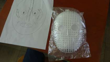 2年生は「おめんでへんしん」。お面を作ります。作品展でみんなの作品が並びます。どんな作品ができるか楽しみです。