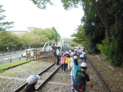 今日は,琵琶湖疏水記念館へ行きました。田邉朔朗の銅像を見たり,インクラインの道を実際に歩いたりと事前学習したことと照らし合わせながら,「あれがそうなんや〜!」と話している子もいました。近くにあった慰霊碑を見つけると,自然と手を合わせるなど当時の人の思いや出来事を真剣にとらえているんだなと感心させられました。