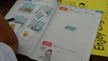今日は,学校で使うものを友だちとたずねたり答えたりして,英語に慣れ親しみました。