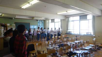 音楽室から,6年生の美しい歌声が響いてきました。ピアノ伴奏に合わせて,みんないい表情で歌っていました。