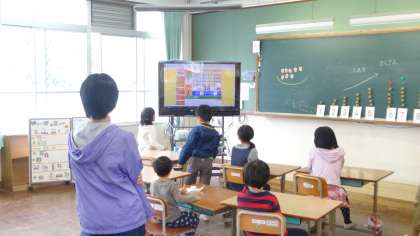 算数の学習の様子です。フラッシュカードで出題される問題に答えたり,ICT教材を活用して問題に挑戦したりしました。