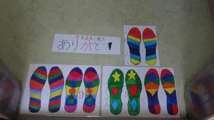 トイレのスリッパをそろえるために,児童会メンバーが作成しました。3階のトイレに早速設置しました。