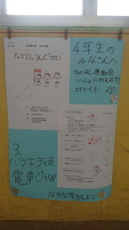 明日は本校でなかよし運動会が開催されます。本校の児童も,学年ごとにそれぞれ参加して交流をします。