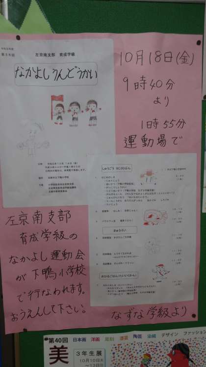 明日は天候がよくない予報となっているので,なかよし運動会は体育館で実施します。ぜひ参観していただき,温かいご声援を宜しくお願い致します。