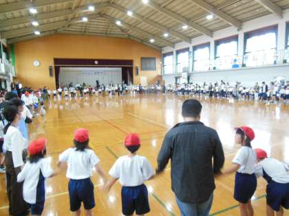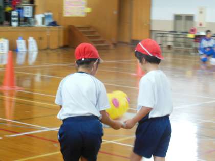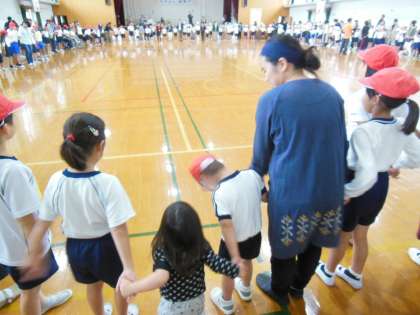 下鴨小学校の交流学年の子どもたちと一緒に走ったり,踊ったり,玉入れをしたりとまた一つ仲良くなれたのではないでしょうか。優しく手をつないでいる様子や「がんばれ〜!」と励ましている様子を見ているとほほえましく思えました。