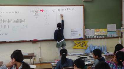 わり算の学習の様子です。今日は,商の見当をつけて計算していきました。