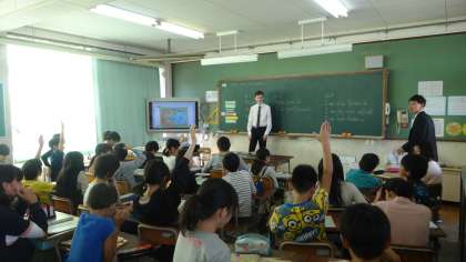 今日はALTの先生と一緒に学習です。新しいALTの先生とも打ち解けてきています。