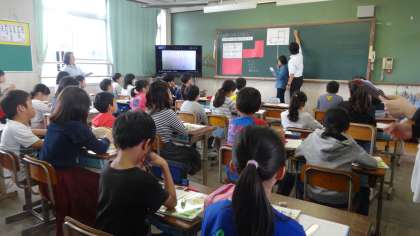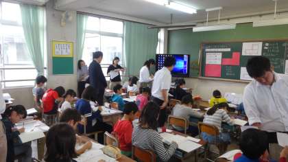 今日は校内の授業研究会の日でした。4年生の「面積」の学習を,教職員で参観しました。