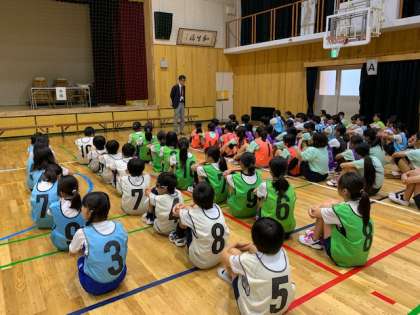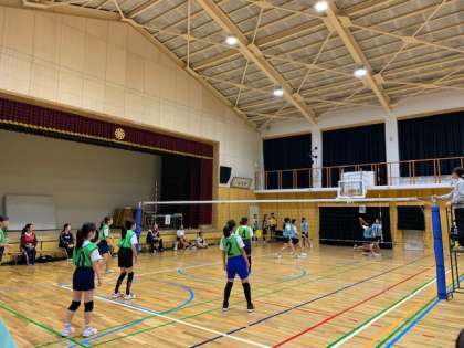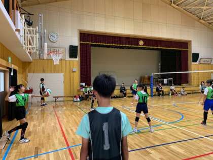 開会式を終えて、試合がはじまりました。まずは6年女子の試合です。いい滑り出しで、1セット,先取しました。