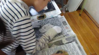 彫刻刀で彫り進めてきましたが,いよいよ刷りの段階に入っています。完成間近です。