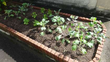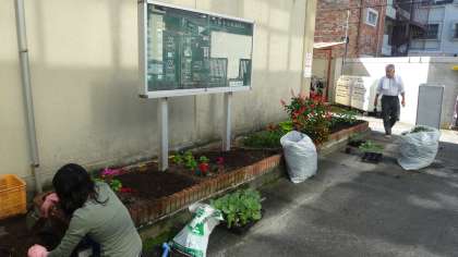 本校の通用門を入ったところにある花壇に葉ボタンを植えました。地域の方にお世話になり,きれいにしていただきました。いつもありがとうございます。