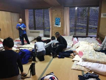 2日目の朝を迎えました。まずは,各部屋で協力して寝具を片付け,活動の準備をします。少し眠たそうな人もいるようですが,みんな元気です。