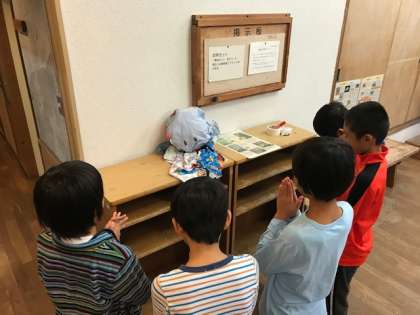 山の家も,朝からあいにくの雨。6年生からプレゼントされたてるてる坊主に向かって,何度も拝んでいます。この願いが届くといいのですが。午前はほぼ予定通りに活動します。午後からのフライングディスクはまだ未定です。
