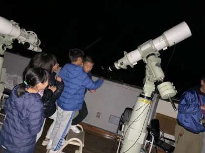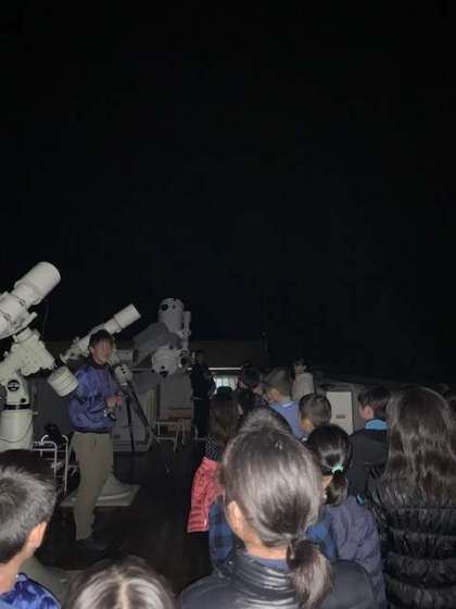 天体観測の様子です。雲が晴れた時に、すごく綺麗に星空が見えました。