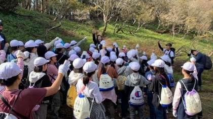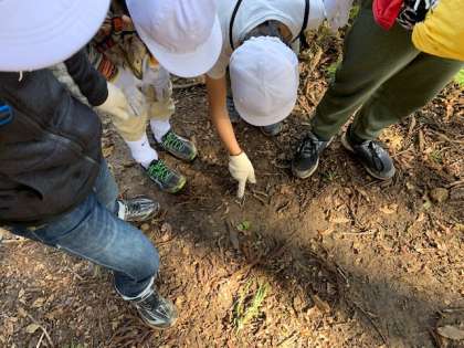 途中,自然の中にあるものに目を向けながら山頂を目指します。景色も少しずつ開けてきました。