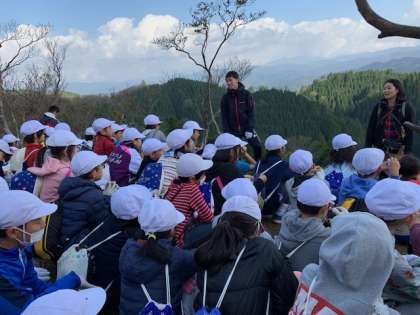山頂に着きました。みんなで頑張って登りました。今から待ちに待ったお昼ご飯です。