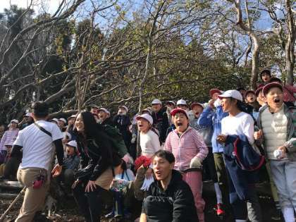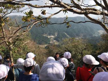 下山途中のヤッホーポイントでは,葛野小学校の皆さんと大声で交信が成功。みんなで大喜びです。