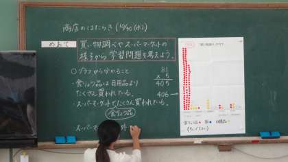 買い物調べの結果をグラフにまとめました。そのグラフを基に,みんなで考えたことを発表し合いました。