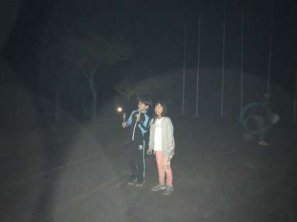 最後の夜はキャンプファイヤーです。レクリエーション係の司会のもと,火の神様と火の子たちが入場してキャンプファイヤーが始まります。