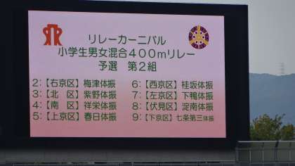 西京極陸上競技場で行われた体振リレーカーニバルの小学生リレーに,本校の6年生も参加しました。うまくバトンをつなぐことができ,予選を突破。見事に準決勝に進出です。