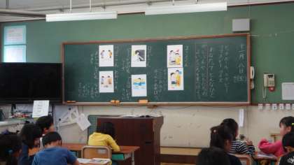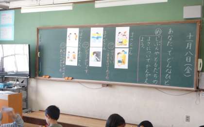 挿絵を見ながら,自分や友だちの良いところについて,みんなで考えました。