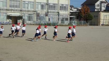 なわとびとジョギングをして,体力アップを目指します。ジョギングでは,何周走ったかを自分で数えながら,みんな頑張って走っていました。