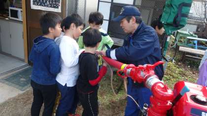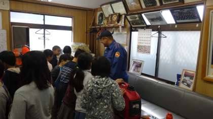消防分団の器具庫も見せていただきました。一つ一つ丁寧に教えていただき,いい学習になりました。ありがとうございました。
