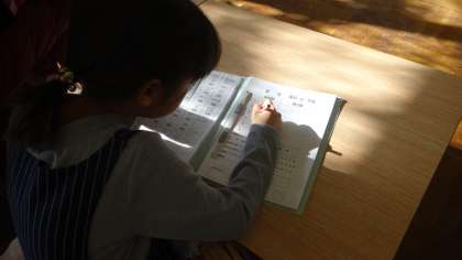 来週の予定表を見ながら,自分なりに計画をそれぞれ整理しています。来週も,元気に頑張りましょう。
