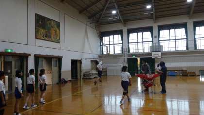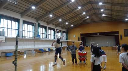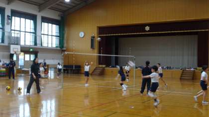バレーボール部にはたくさんの部員がいますが,先生や地域指導者の方々と一緒に,頑張って練習しています。