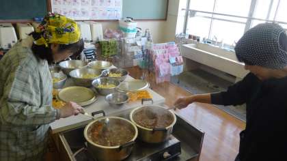 少年補導の方々が作るカレーもいいにおいがしてきました。バザーの出店準備も整ってきました。