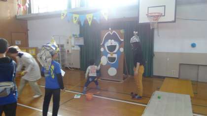 体育館では,地域の方やPTAの方にお世話になって,各コーナーが運営されています。