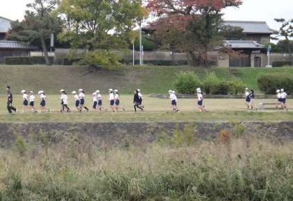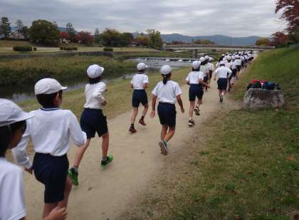 来週26日(火)の持久走大会に向けて,賀茂川を実際に走りました。高学年は毎年走っているので,走り慣れた感じで先生と一緒に走っていました。
