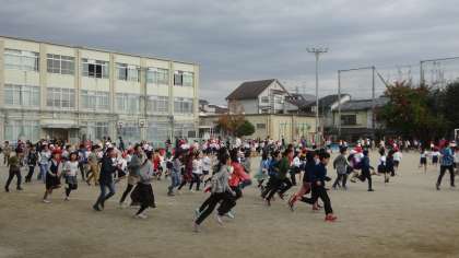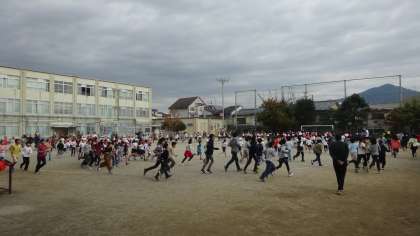 中間マラソン2日目。今日も元気いっぱいに走っています。走り終わったらしばらく歩いてクールダウン。終わったら手洗い,うがいもしっかりして体調管理には十分気を付けましょう。