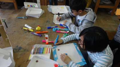 「コロコロがーれ」の制作に取り組んでいます。みんな思い思いに制作しています。完成が楽しみです。
