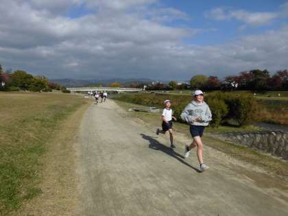 4年生と6年生は合同で加茂川に持久走大会の下見に行ってきました。6年生に励まされながら,4年生も頑張って走っていました。